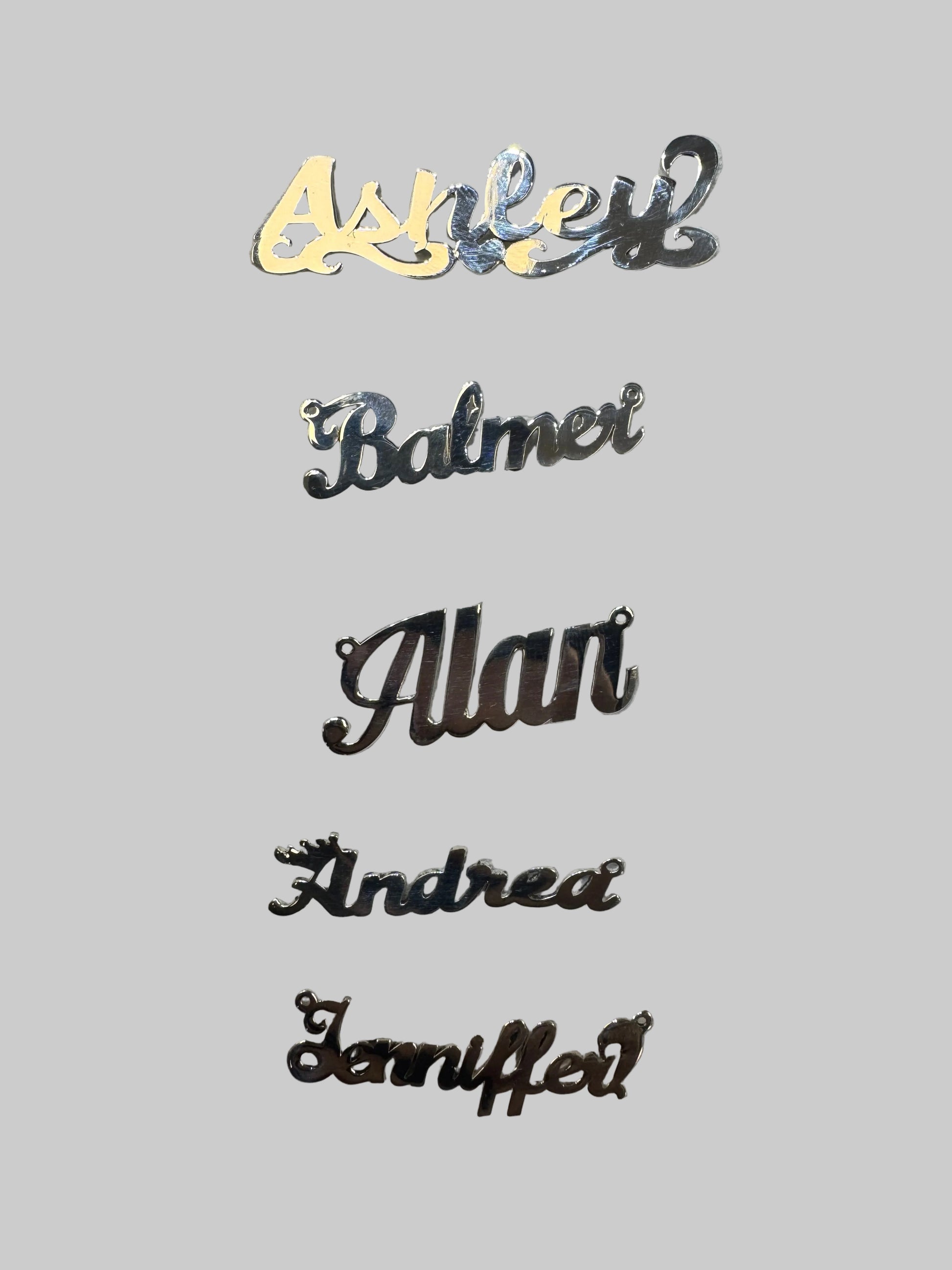The 925 Silver Name + Chain features a high-quality 925 silver name pendant, known for its durability and resistance to tarnishing. This product includes a matching chain, providing a complete and elegant accessory. The silver's hypoallergenic properties make it suitable for sensitive skin, ensuring comfort during wear.