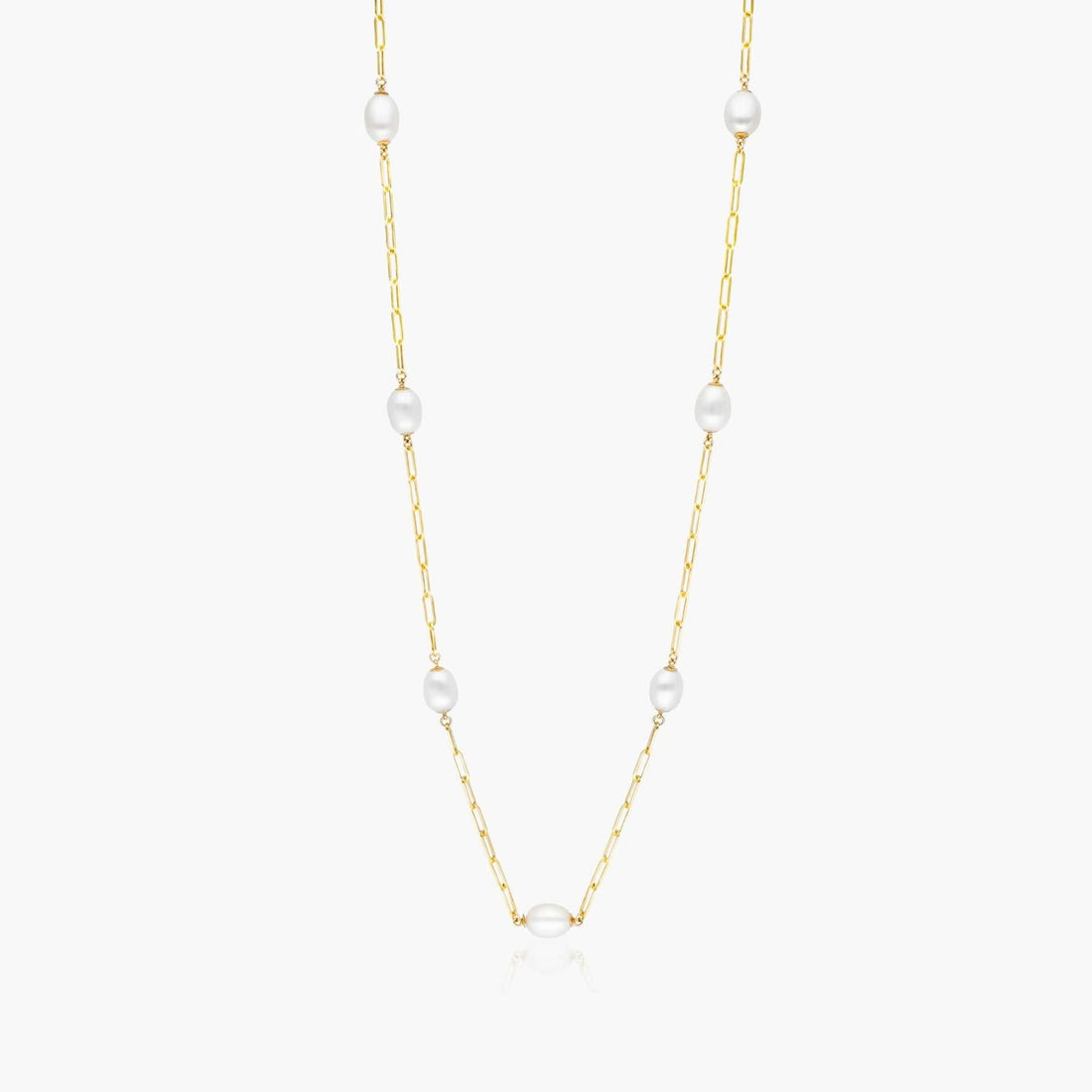 14K Yellow Gold Freshwater Cultured Pearl Station Paperclip Necklace