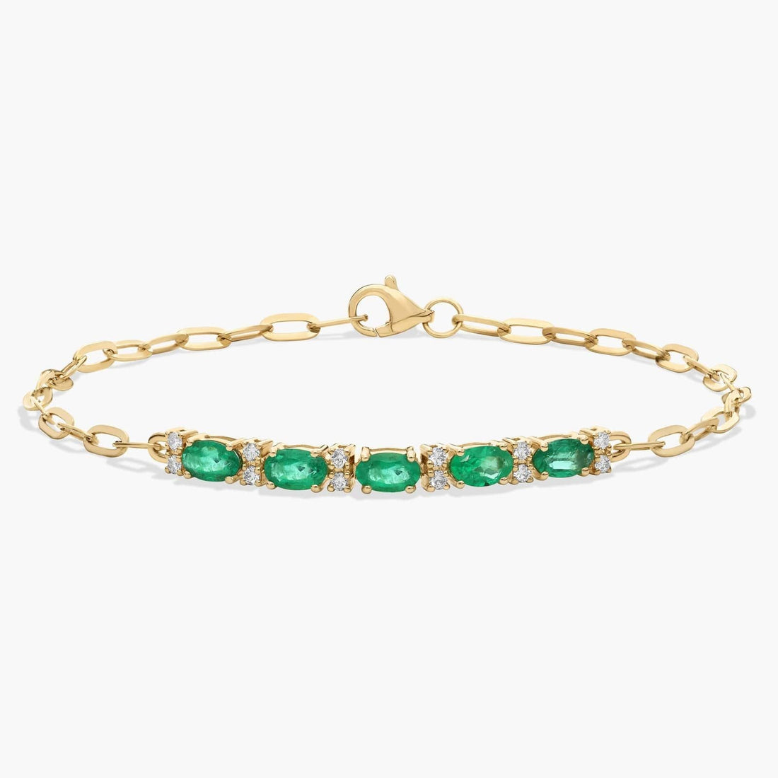 Diamond and Emerald Paperclip Bracelet in 14K Yellow Gold