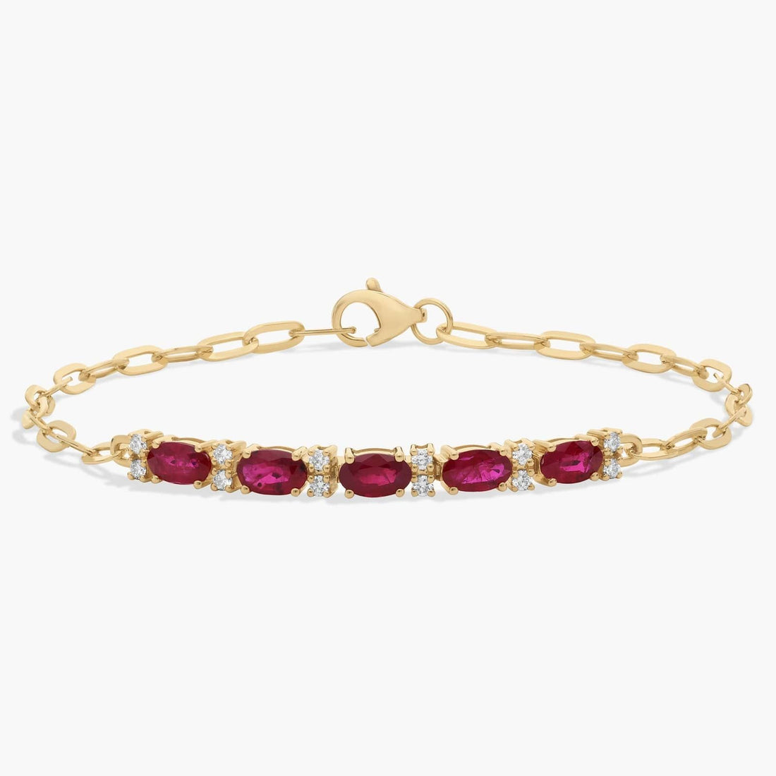 Diamond and Ruby Paperclip Bracelet in 14K Yellow Gold