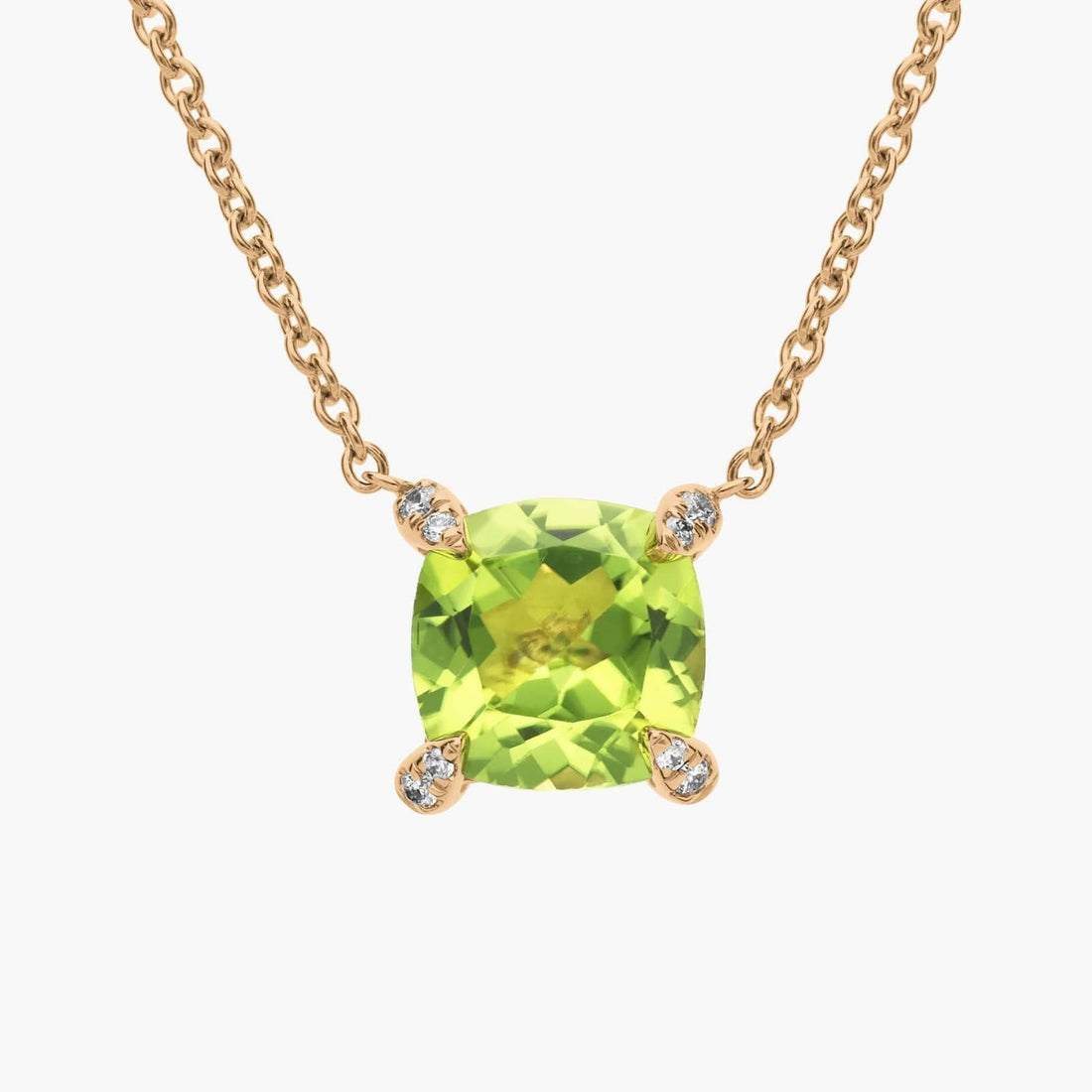 Cushion Cut Peridot and Diamond Accent Pendant in 14k Yellow Gold (7mm)