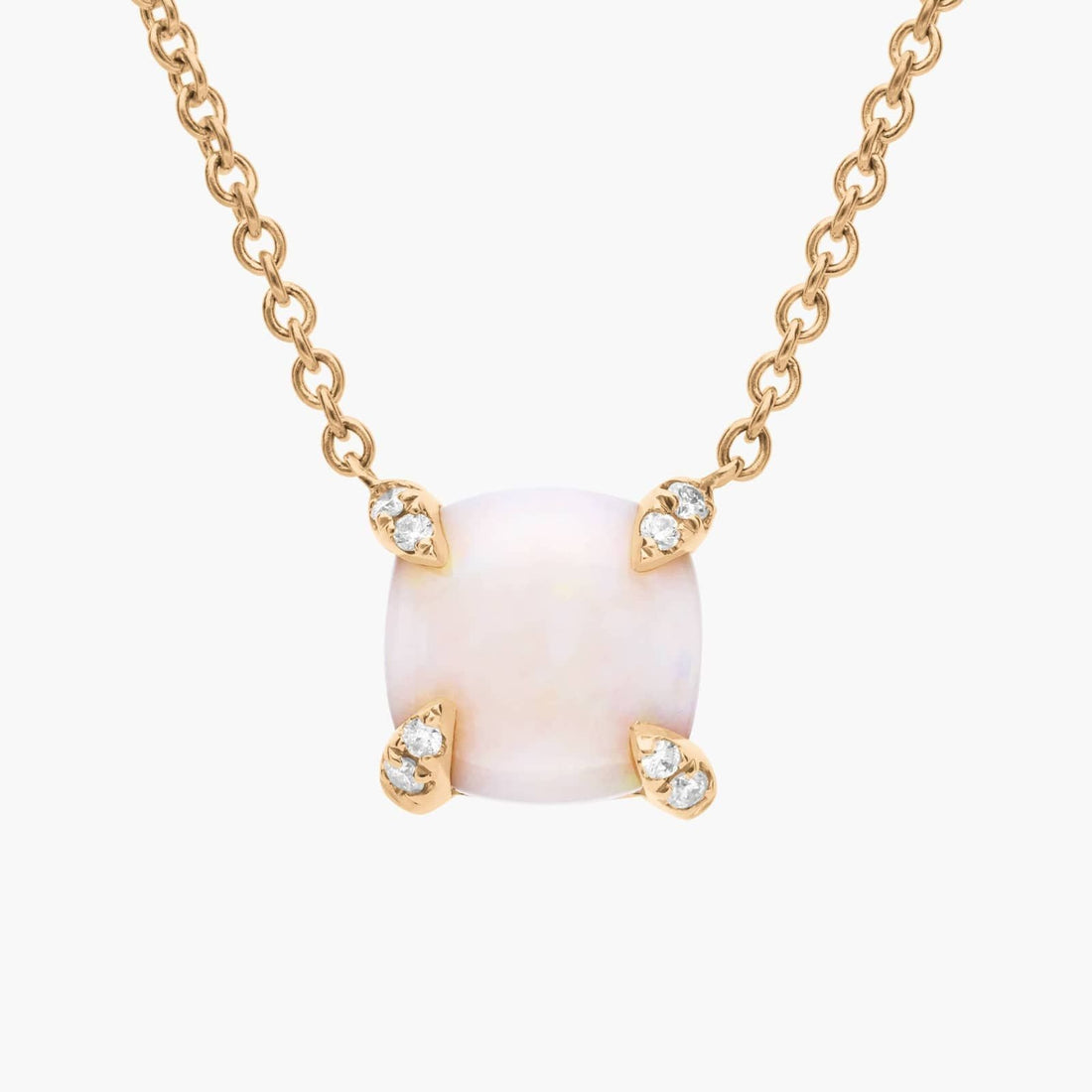 Cushion Cut Opal and Diamond Accent Pendant in 14k Yellow Gold (7mm)