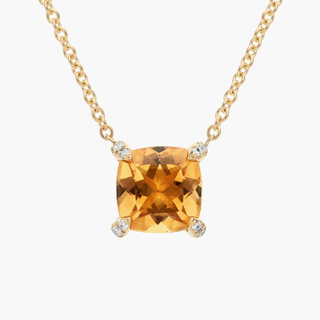 Cushion Cut Citrine and Diamond Accent Pendant in 14k Yellow Gold (7mm)