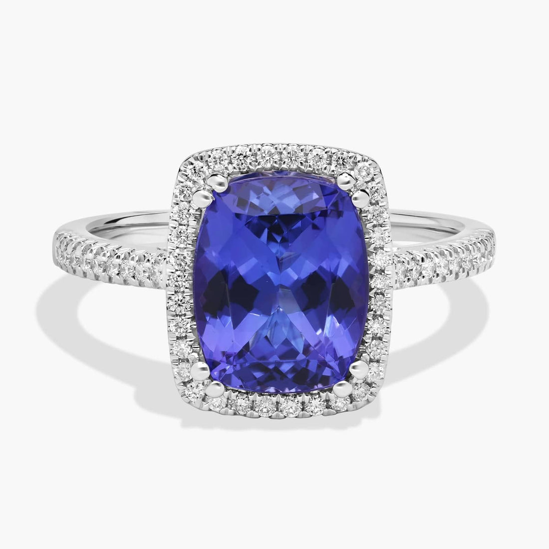 Cushion Cut Tanzanite Diamond Halo Ring in 14k White Gold (7mm)