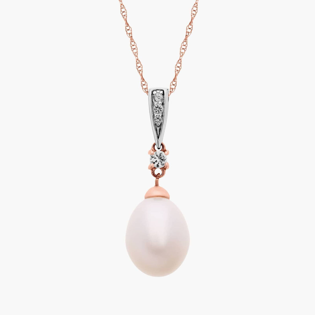 Freshwater Cultured Pearl and White Topaz Pendant in 14k Rose Gold (7.5mm)