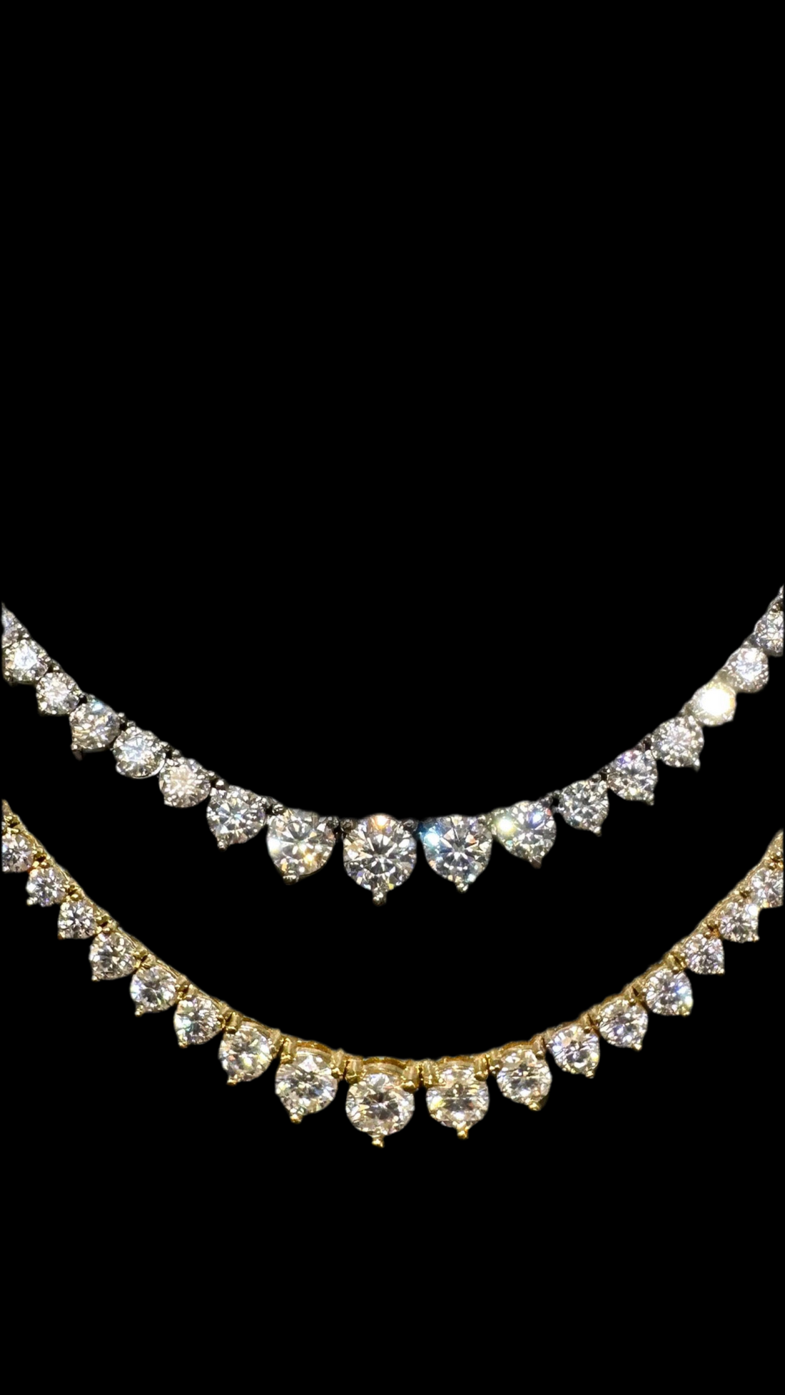 Graduated Diamond Tennis Necklace set on 14K Gold