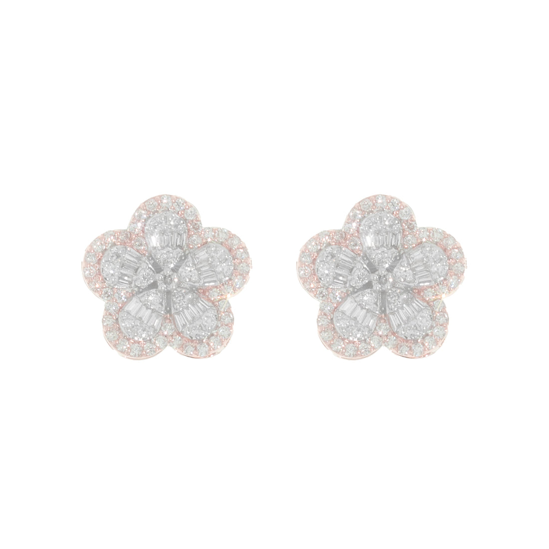 Mini Ruby Earrings with Diamond Blossom Halo in 14k Rose Gold (3.5mm)