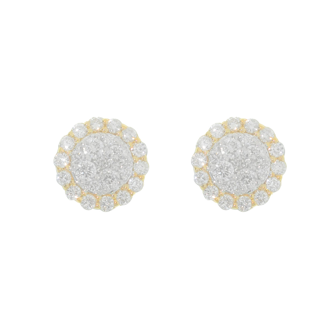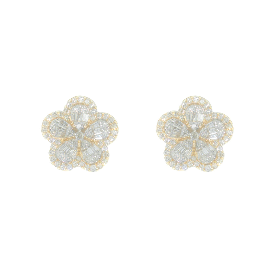 Mini Emerald Earrings with Diamond Blossom Halo in 14k Yellow Gold (3.5mm)