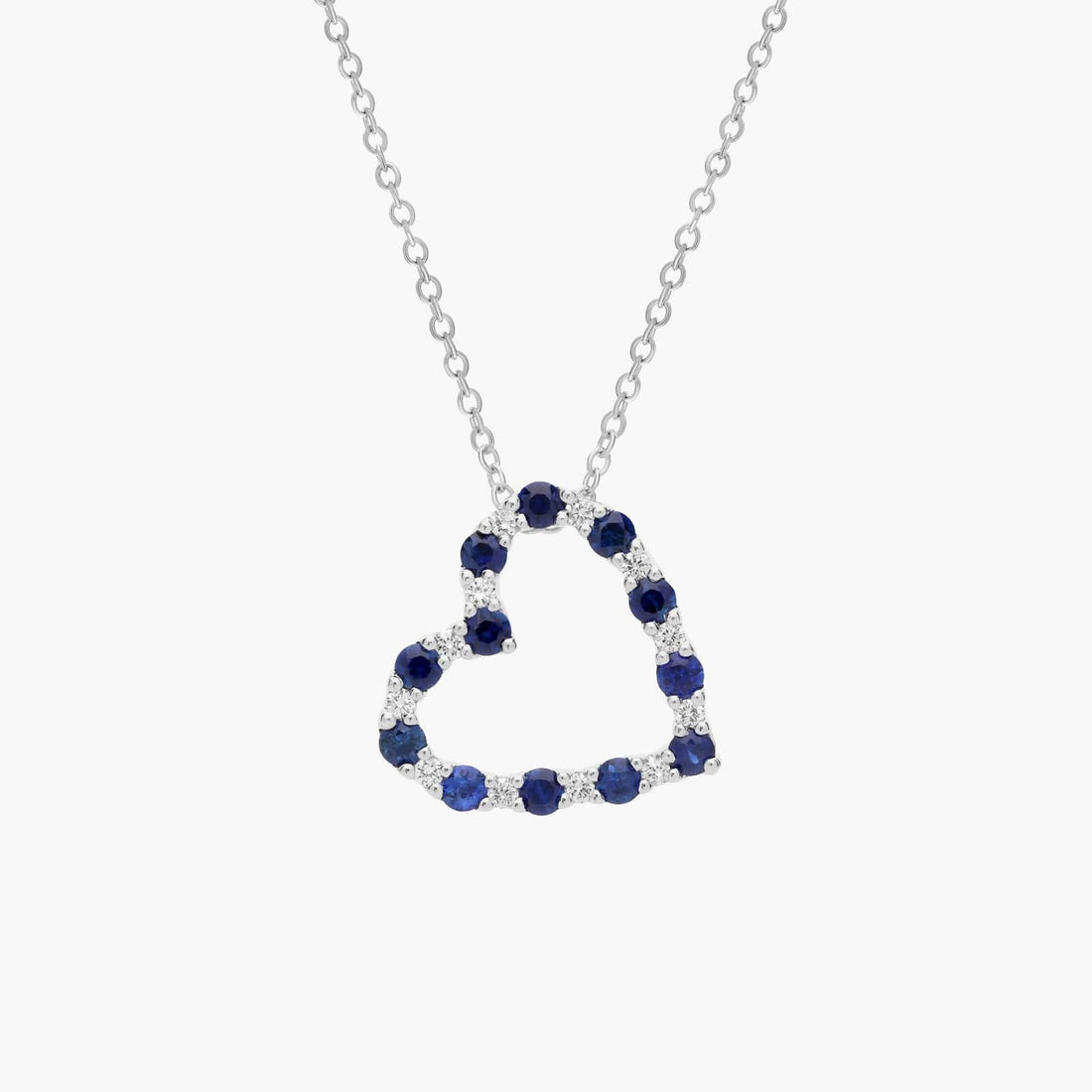 Luna Sapphire and Diamond Heart Pendant Necklace in 14k White Gold