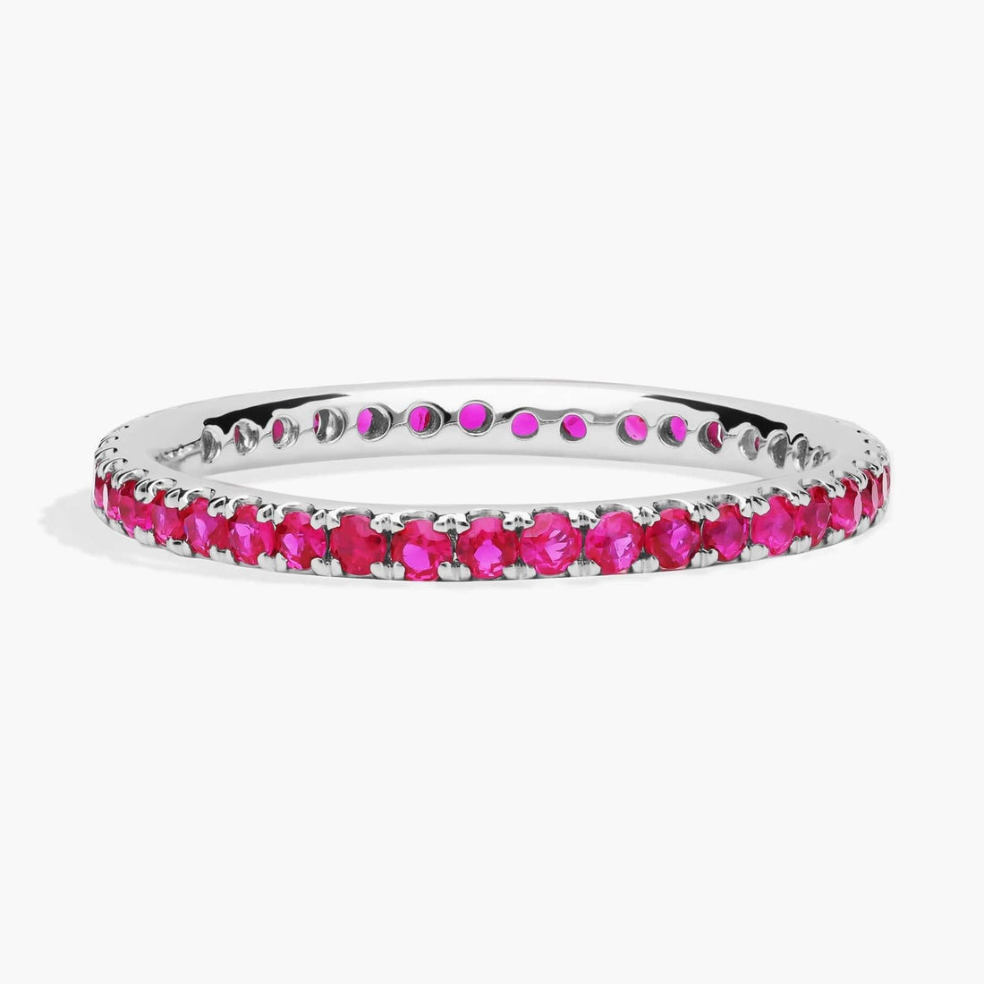 Riviera Pavé Ruby Eternity Ring in 18k White Gold (1.5mm)