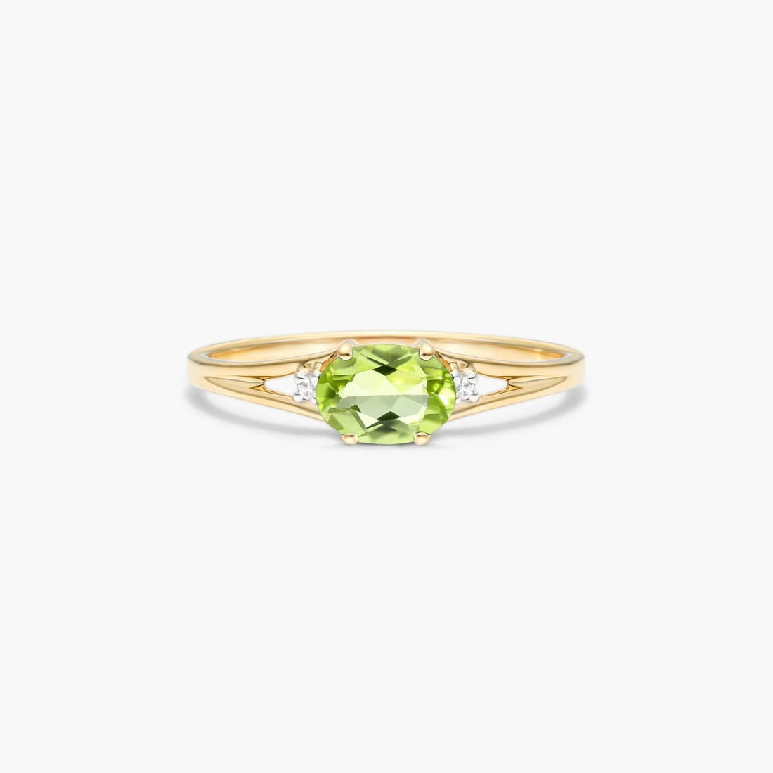 Oval Peridot And Diamond Accent Birthstone Ring In 14K Yellow Gold
