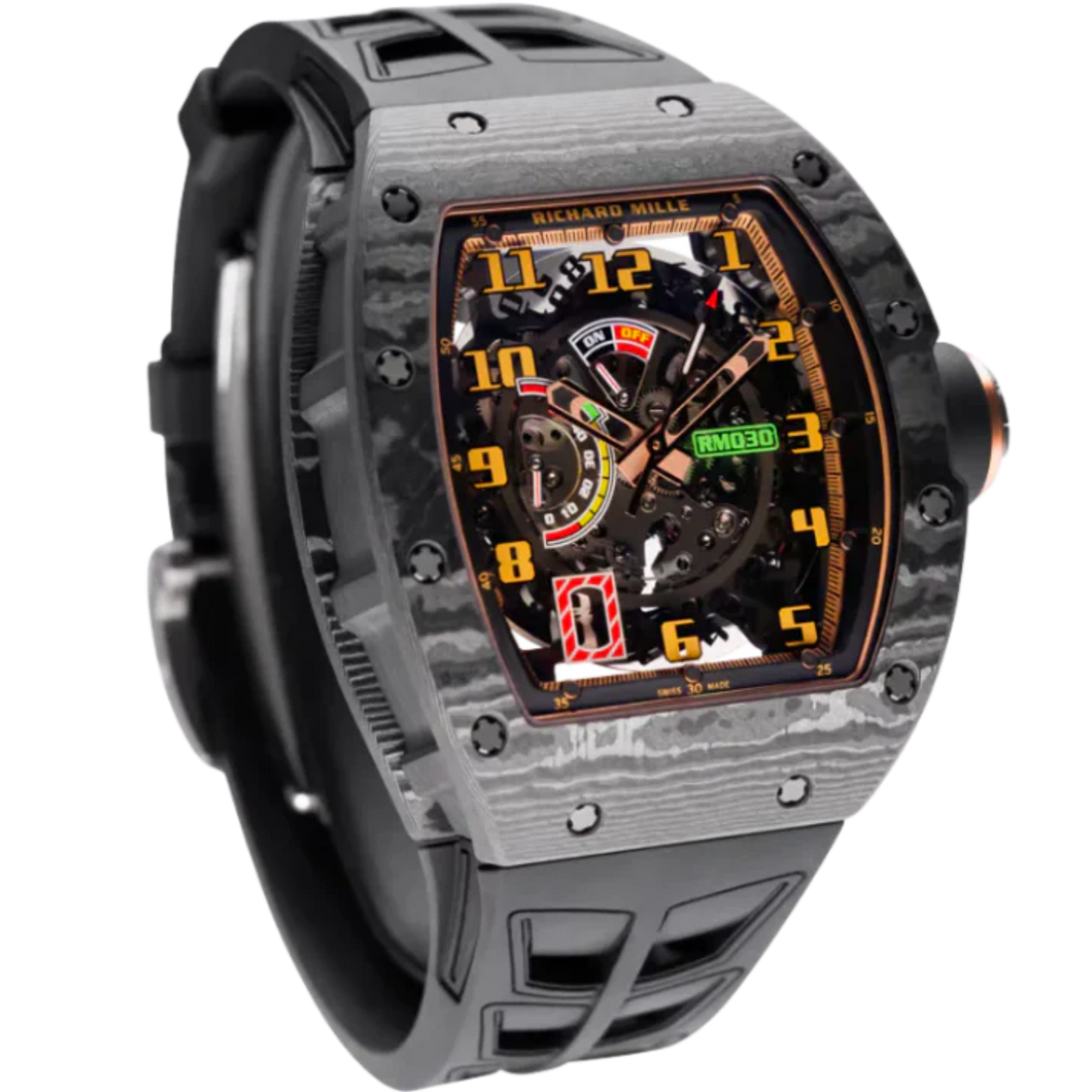 RM 030 White Rush Rubber Strap Carbon Case White Bezel