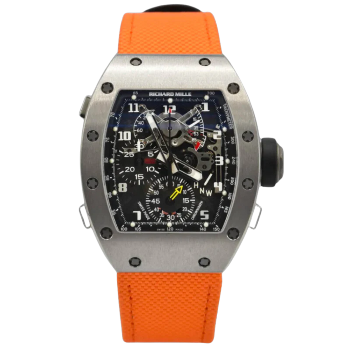 RM 004-V1 White Gold Split Second Chronograph Rockefeller Orange Strap White Gold Case
