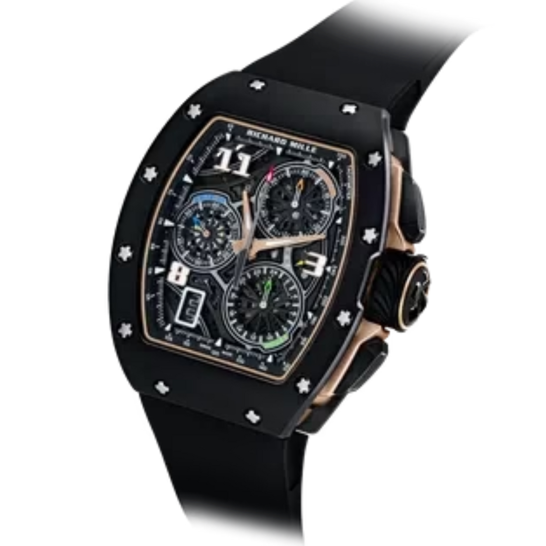 Rm 07-01 18K Rose Gold Carbon Diamond Set Black Rubber Strap Carbon and Rose Gold Case
