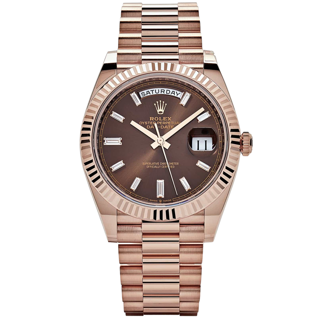 Rolex Day-Date Ref. 228235A Rose Gold Chocolate Dial with Baguette Markers