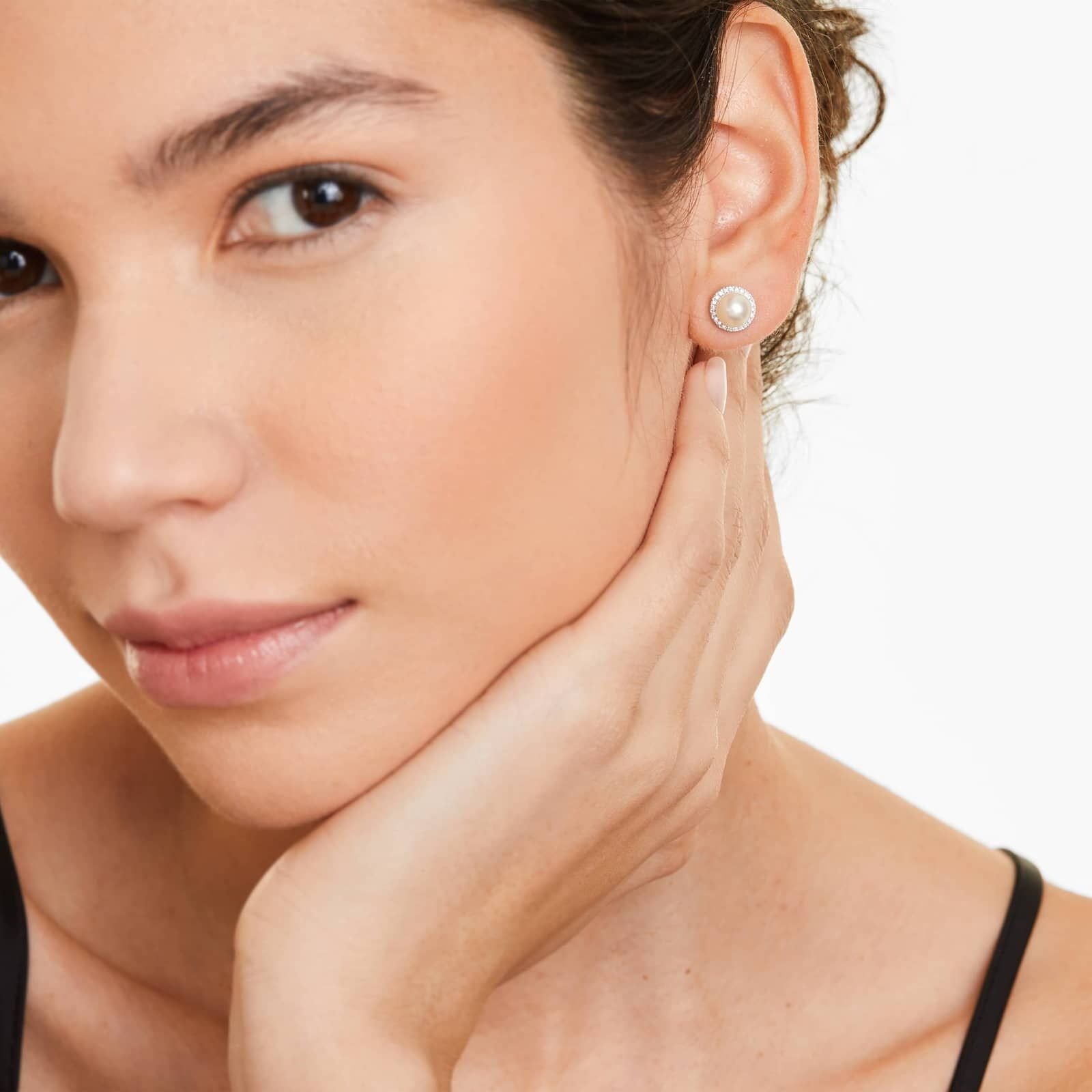 • Gemstones: 8mm Cultured Freshwater Pearls with Diamond Halo