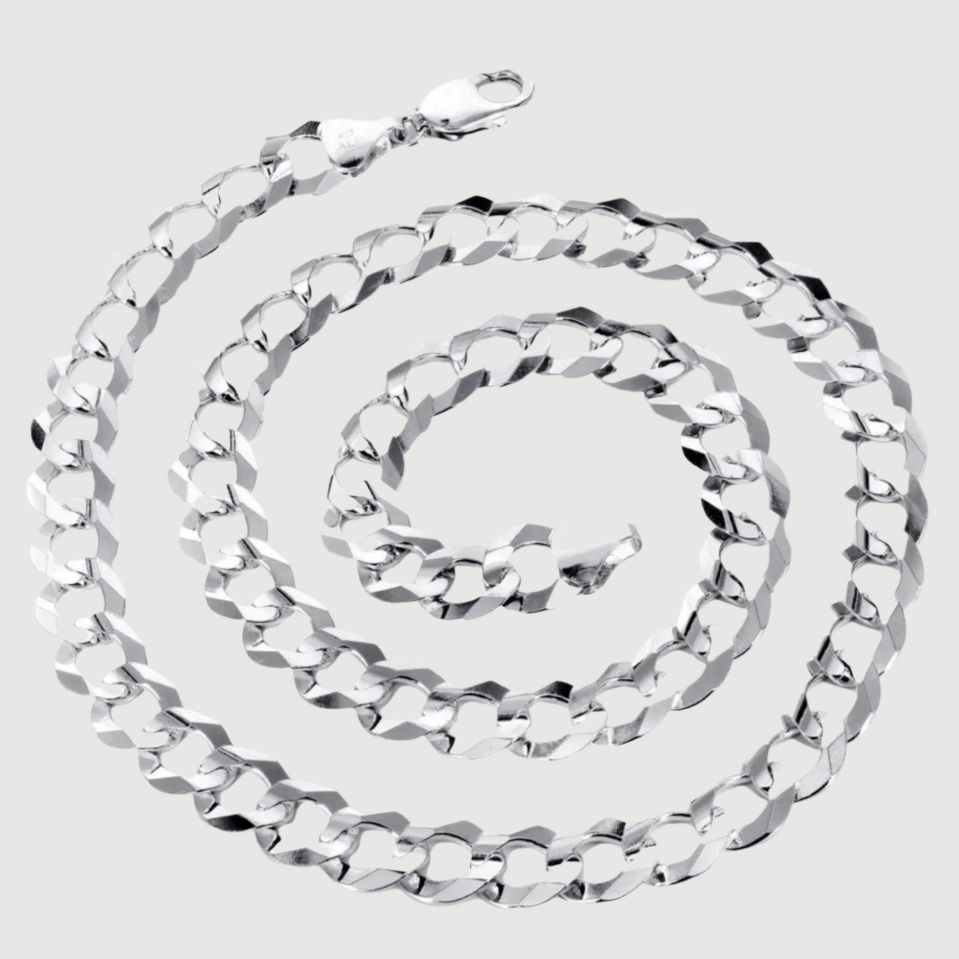 The 6mm-9.5mm Curb Link Chain in Solid White Gold is a timeless accessory that exudes sophistication and elegance. Crafted from genuine 14K solid white gold, this chain features the iconic curb link design, celebrated for its sleek interlocking structure and polished finish. With widths ranging from 6mm to 9.5mm, it offers a bold yet versatile style, perfect for enhancing everyday wear or complementing formal attire.