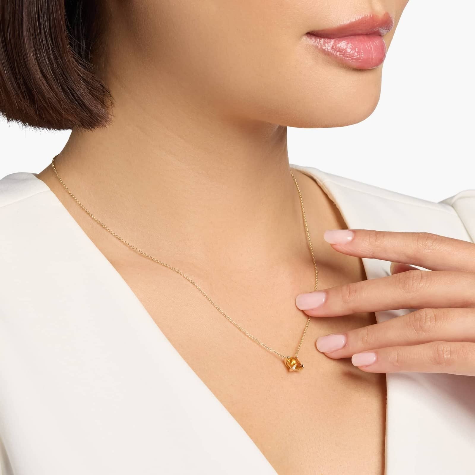 Radiate warmth and elegance with this stunning Cushion-Cut Citrine and Diamond Accent Pendant. The 7mm cushion-cut citrine stone gleams with its brilliant yellow hue, symbolizing positivity, vitality, and energy. The pendant is crafted in 14K yellow gold and features bright diamonds set in the corner prongs of the citrine, adding an extra layer of sparkle and sophistication. Suspended from an 18-inch cable chain with a lobster claw clasp, this statement piece is perfect for adding a vibrant touch to any ensemble.