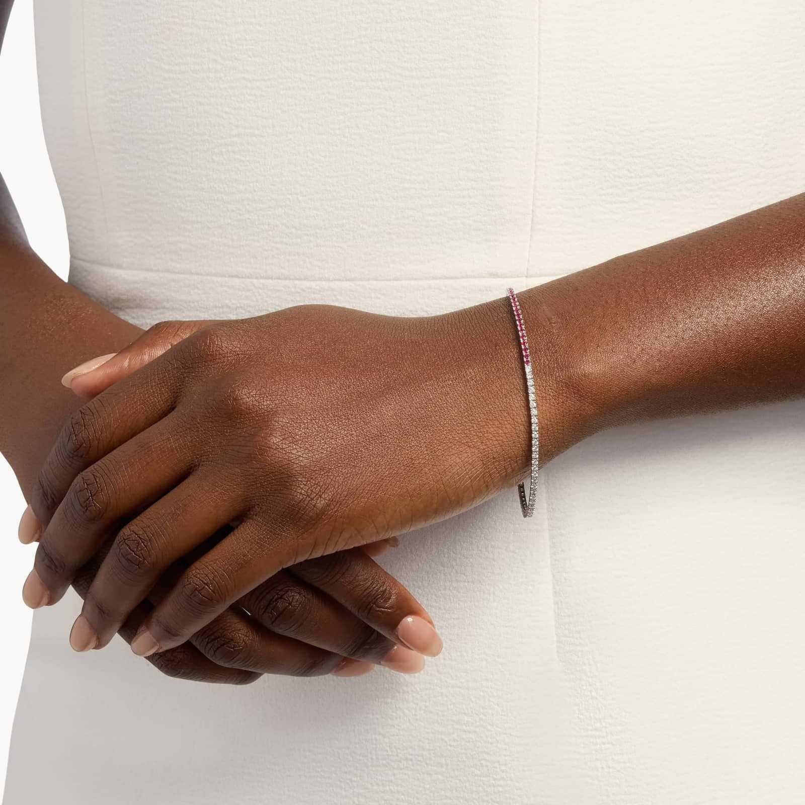 Striking and unique, this Half-and-Half Diamond and Ruby Tennis Bracelet redefines classic luxury with a modern twist. Handcrafted in 14K white gold with a rhodium finish for maximum brilliance, this bracelet features sparkling diamonds along one half and vivid rubies along the other—creating a stunning balance between fiery color and radiant light. The rich red rubies, July’s birthstone, symbolize love, passion, and vitality, while the diamonds embody timeless elegance and purity. Together, they make this bracelet a captivating statement piece perfect for any occasion. Finished with a secure box clasp, it offers both beauty and confidence in every wear.