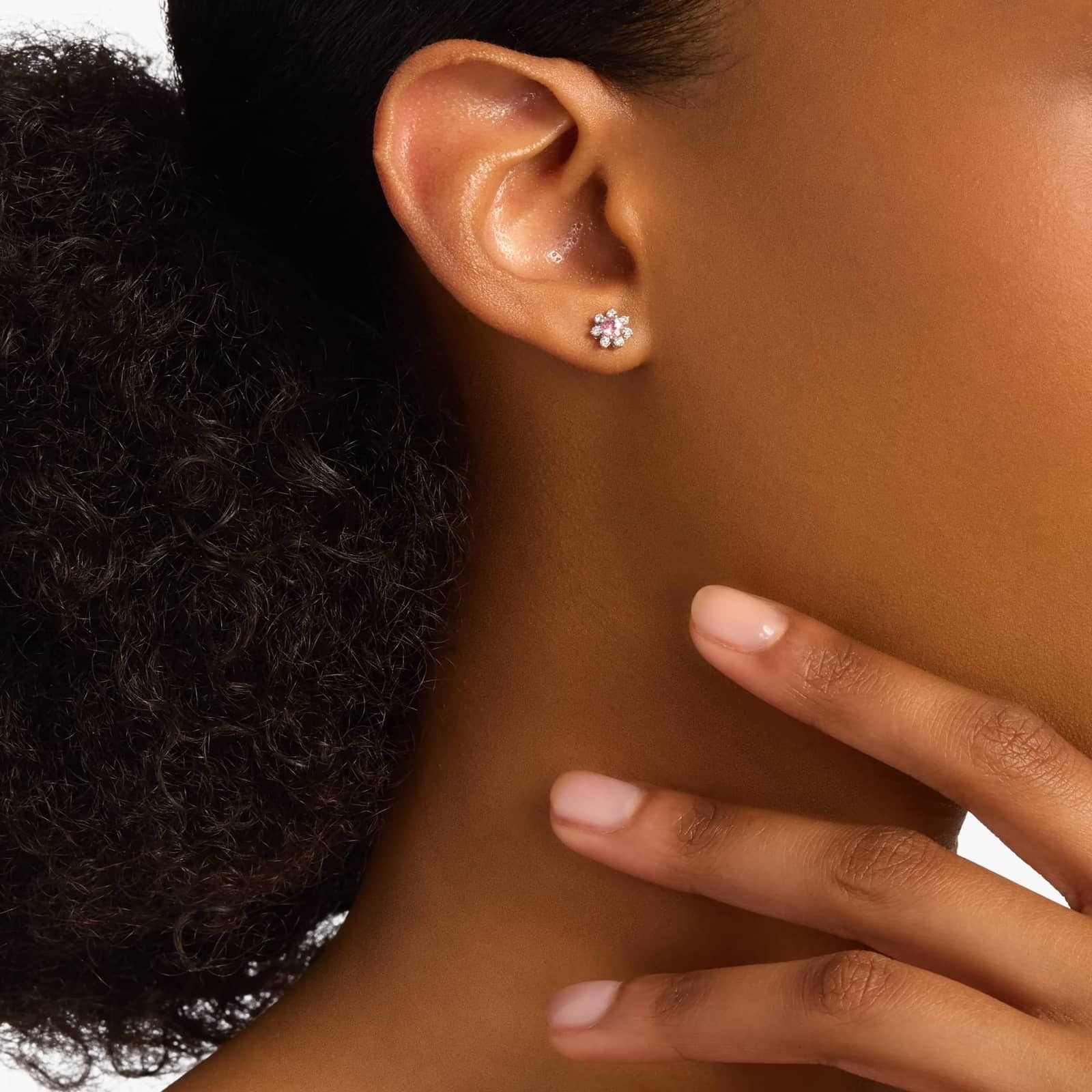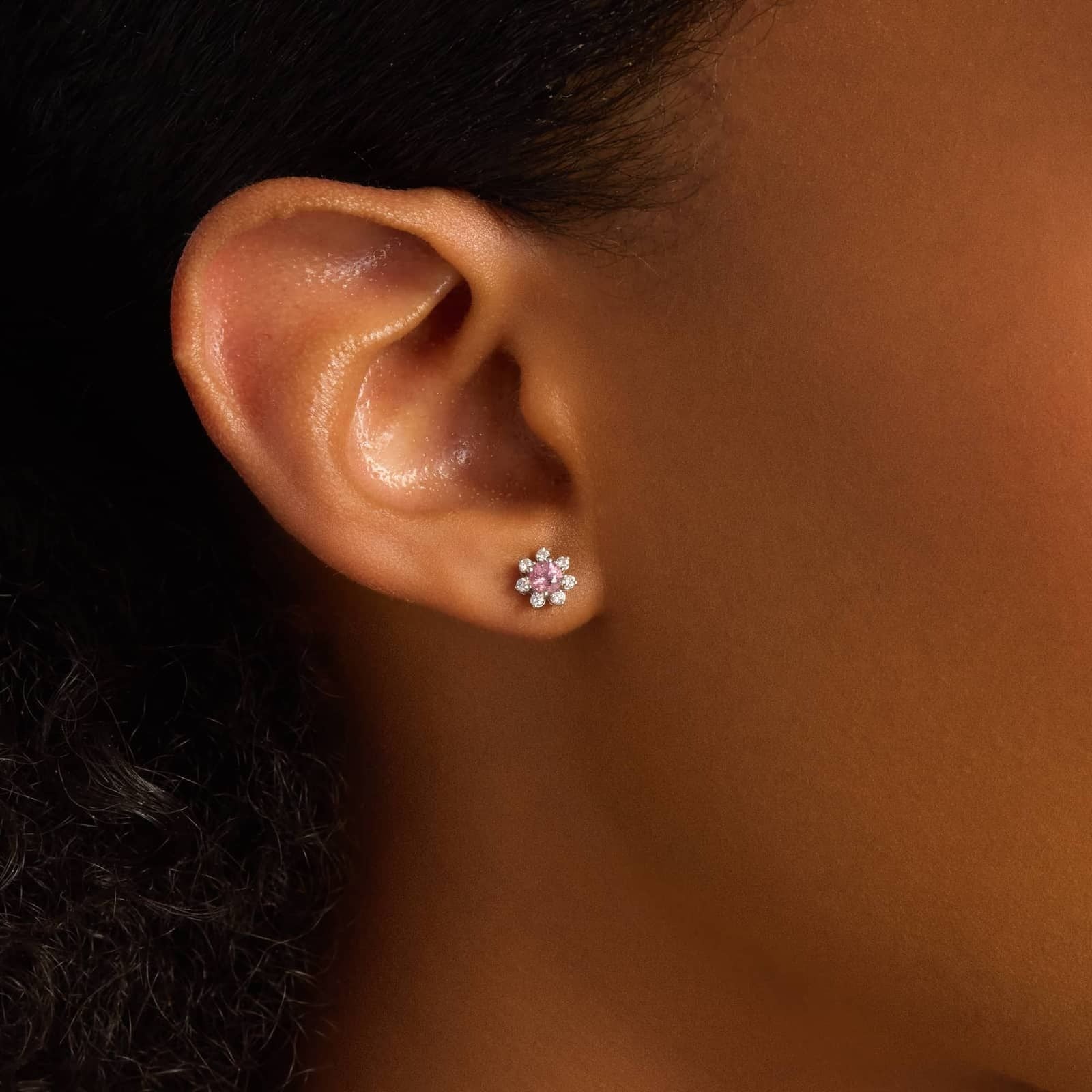 • Gemstone: 3.5mm Pink Tourmaline with Diamond Blossom Halo