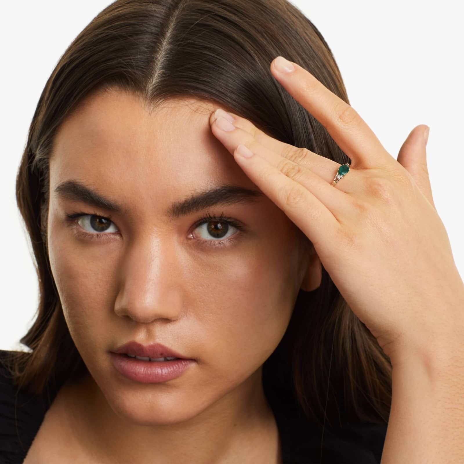 • Gemstone: Oval Emerald (May Birthstone) with Diamond Accent