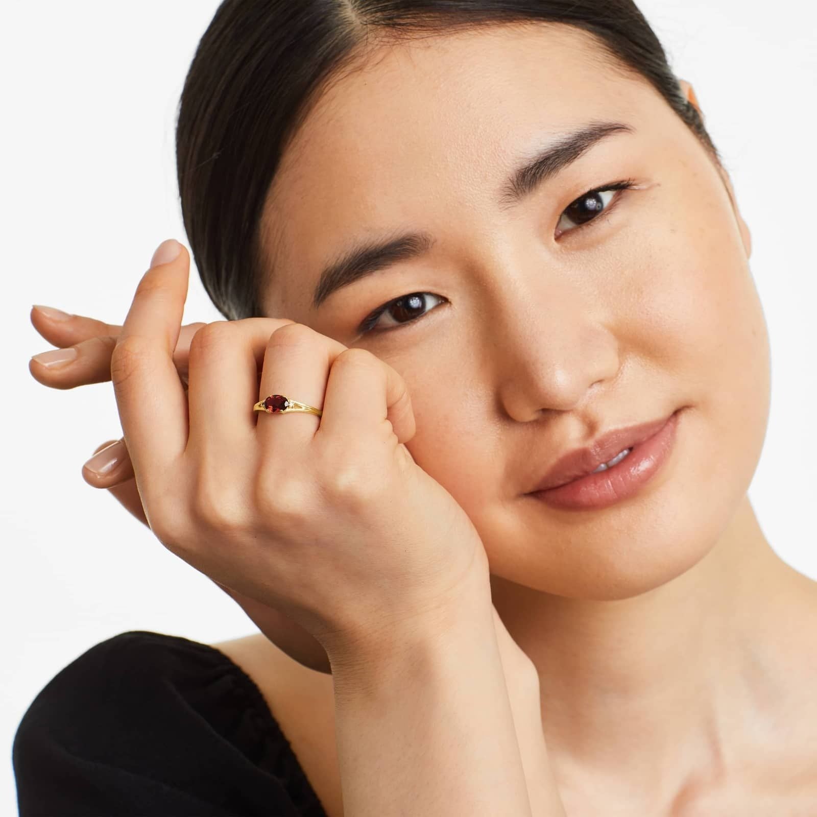 • Gemstone: Oval Garnet (January Birthstone) with Diamond Accents