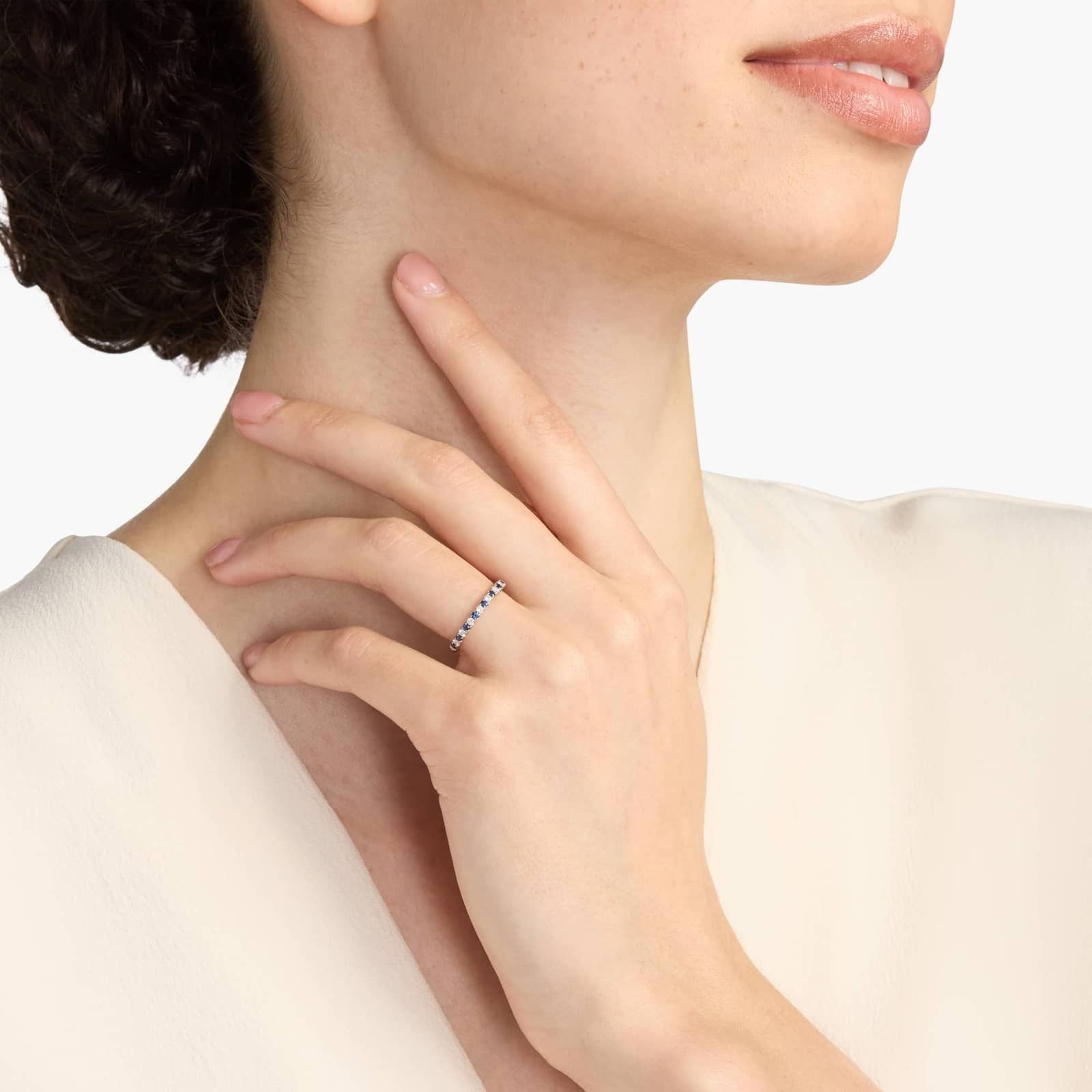 • Gemstones: Marquise-Cut Blue Sapphires (September Birthstone) and Pavé Diamonds