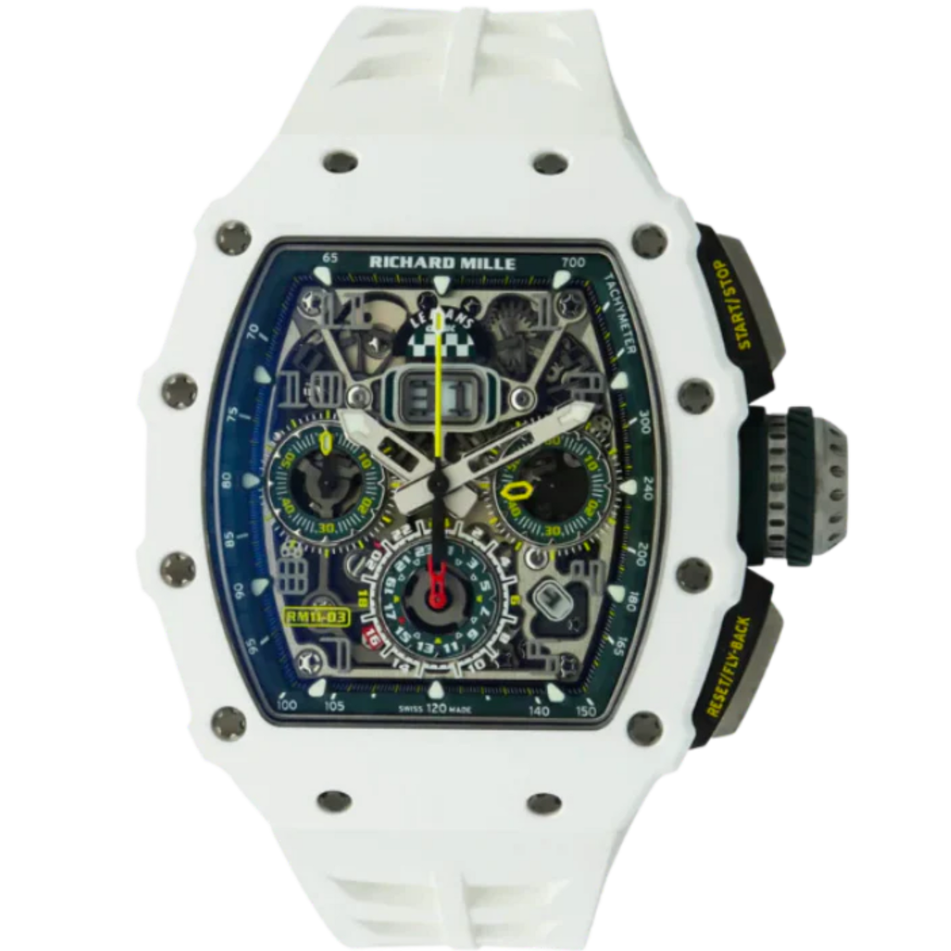 RM 011-03 Le Mans Classic White Ceramic Rubber Strap Skeleton Dial White ATZ Ceramic Case