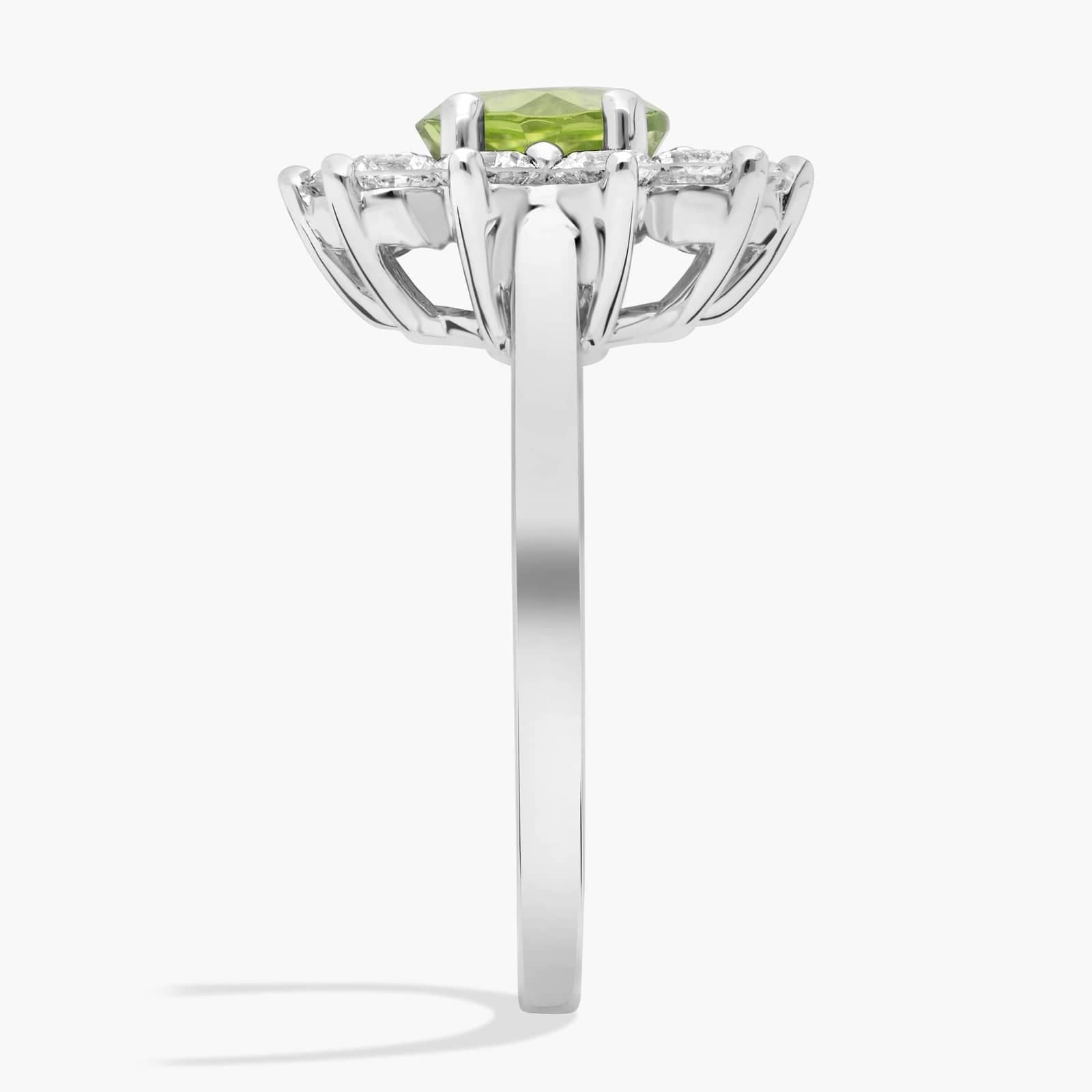 • Gemstones: Round-Cut Peridot (August Birthstone) with Diamond Halo