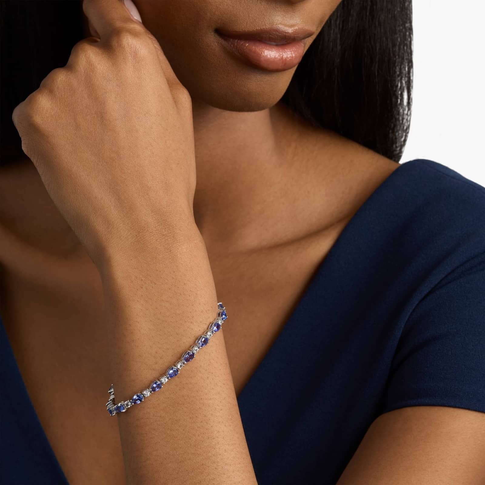 Elegant and captivating, this Tanzanite and White Sapphire Bracelet brings together the striking beauty of vibrant tanzanite gemstones and the sparkle of white sapphires. Set in 14K white gold with a sleek rhodium finish, the combination of rich blue tanzanite and sparkling white sapphires creates a stunning contrast that shines with every movement. Perfect for adding a pop of color and luxury to any look, this bracelet is secured with a box clasp for a secure and comfortable fit. Whether worn alone or paired with other bracelets, this piece is a timeless addition to your collection.