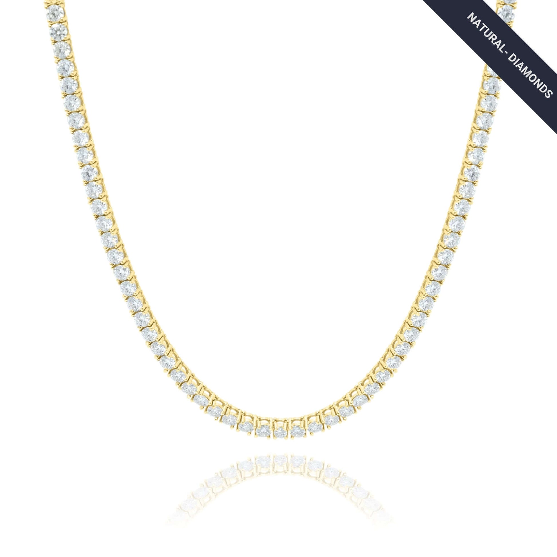Indulge in unparalleled luxury with our 14K Gold Natural Diamond Tennis Chain. This exquisite chain features a continuous line of genuine, hand-selected natural diamonds, meticulously set in lustrous 14K gold. Experience the enduring prestige and unmatched brilliance of natural diamonds, the ultimate symbol of timeless elegance and lasting value.
